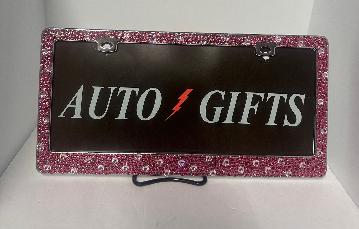 Multiple Sized Pink Color Crystals Chrome Metal Frame