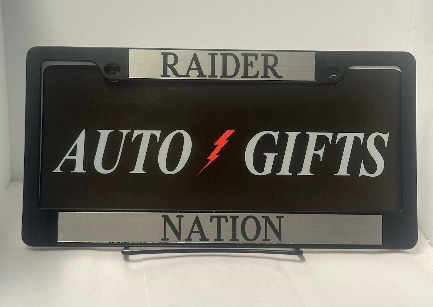 pgrade your vehicle's appearance with our Black RAIDER NATION License Plate Cover. Made in the USA, this customizable cover adds a sleek, clean look while protecting your license plate. Let us create your dream plate.